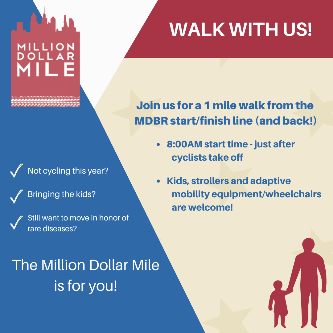 Those who are not cycling are welcome to walk the Million Dollar Mile! You must be registered to participate. Please note, this is for walkers, strollers and adaptive mobility equipment only. No bicycles or scooters permitted. All children must be accompanied by an adult.